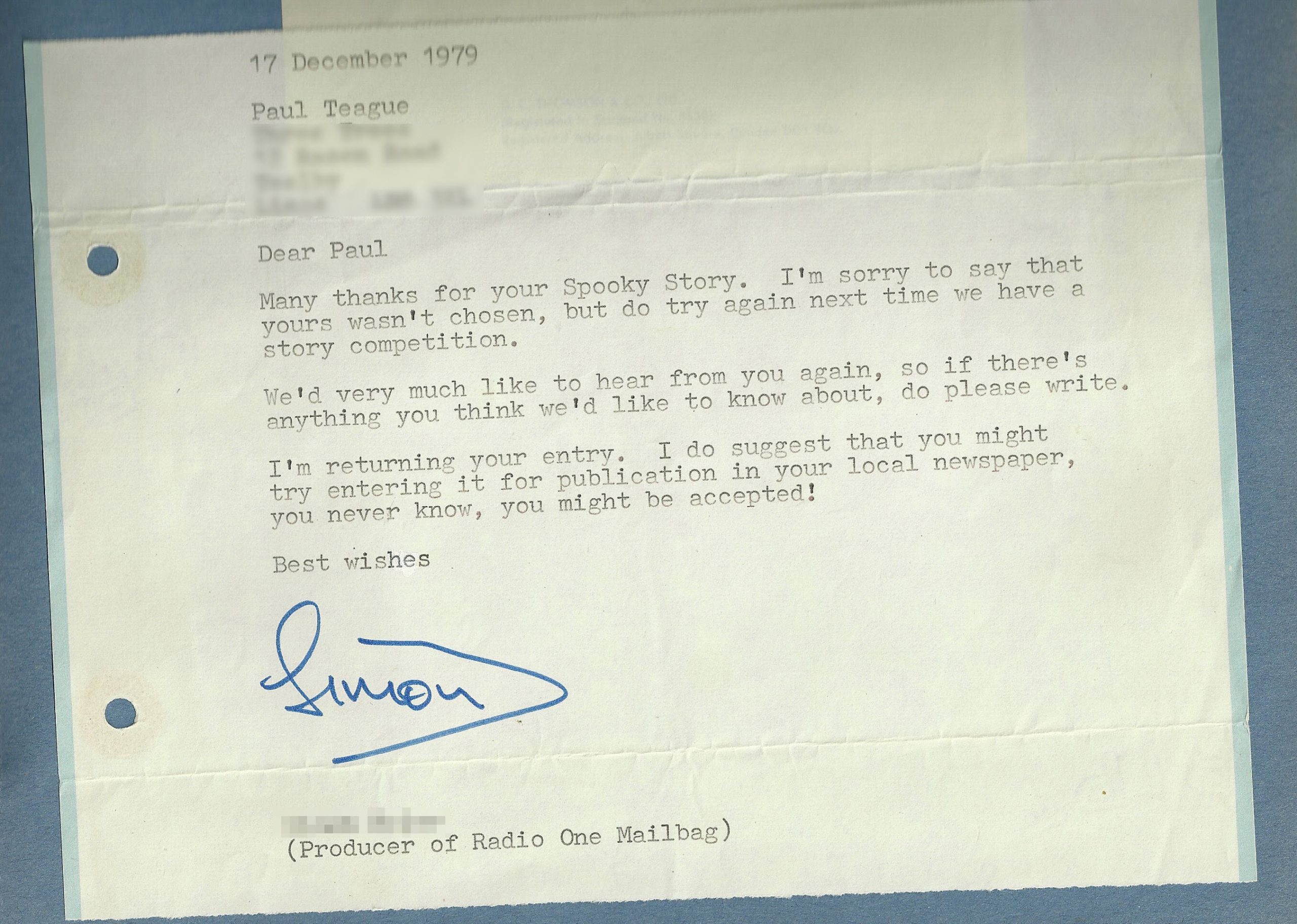 I'm not sure if I still have the story – it must be in the attic boxes somewhere – but it was a huge thrill to receive a letter from the BBC in those days.